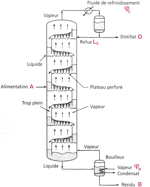 \({\varphi}_R\) et \({\varphi}_C\) sont respectivement les flux de chaleur à fournir au rebouilleur et à évacuer au condenseur.